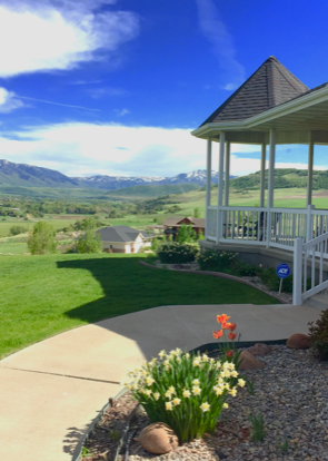 You can be married under the peaked roof of our porch, out in the grass, or up the the TOP OF OUR HILLSIDE’s private acreage with sunset views! All have that gorgeous Wasatch Mountain Range view!!!!